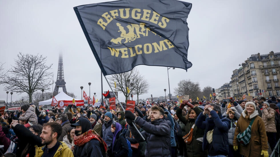 Manifestantes em defesa de refugiados na França. Foto: reprodução