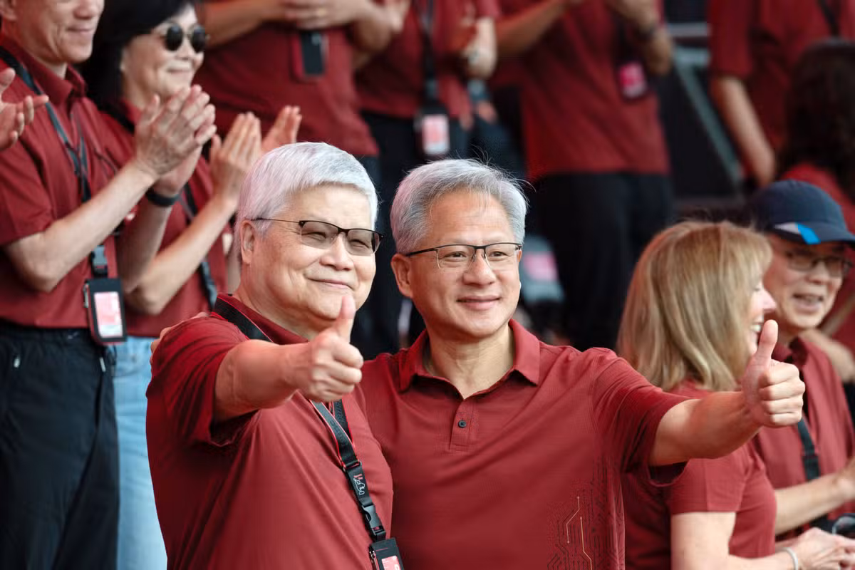 Huang jantou com Wei, da TSMC, na sexta-feira. Neste sábado, ele expressou gratidão à TSMC por seu apoio essencial, que, segundo ele, foi fundamental para o sucesso da Nvidia.
