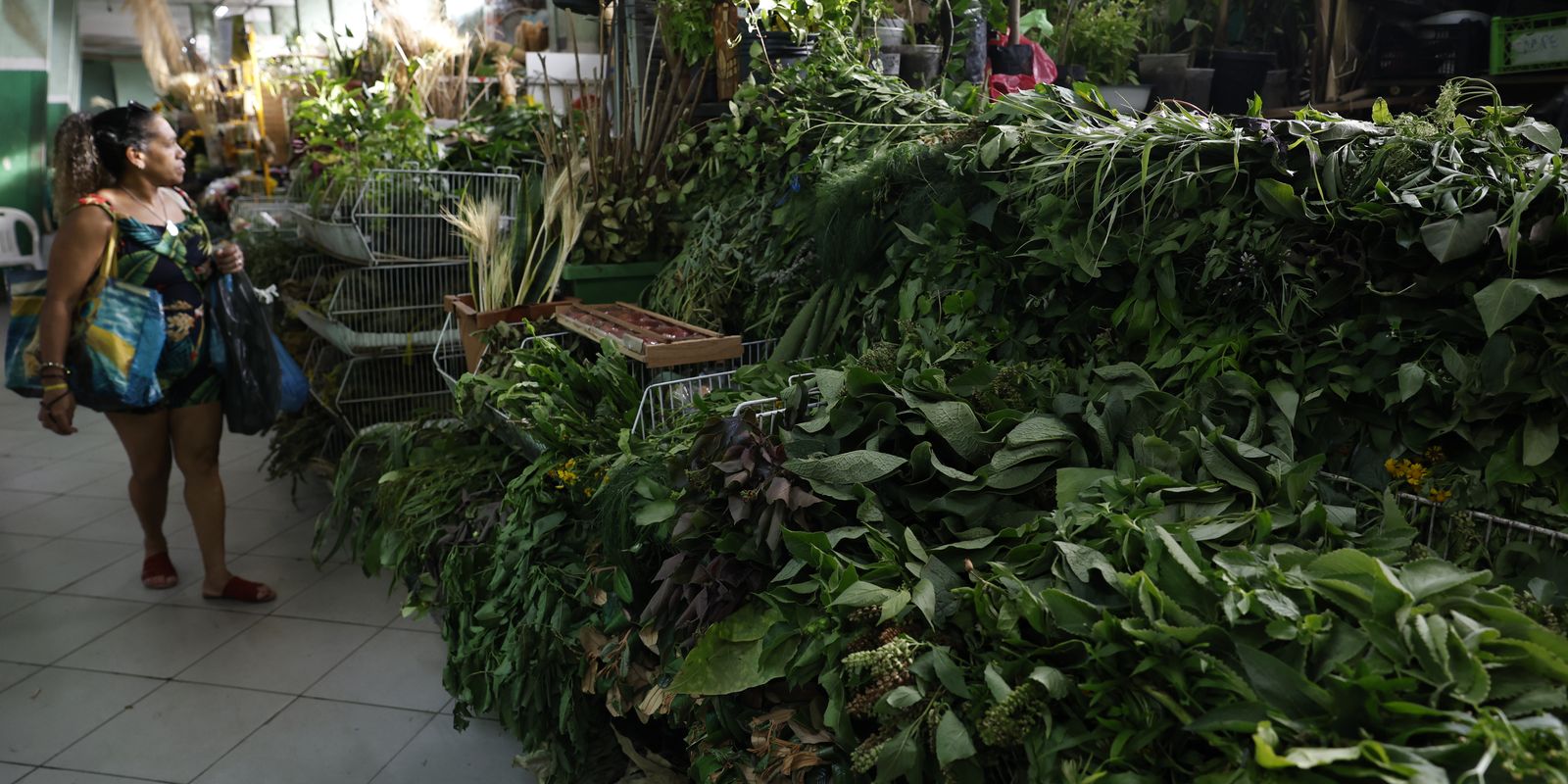 Comércio de ervas para banhos energéticos e espirituais no Mercadão de Madureira. Foto: Fernando Frazão/Agência Brasil