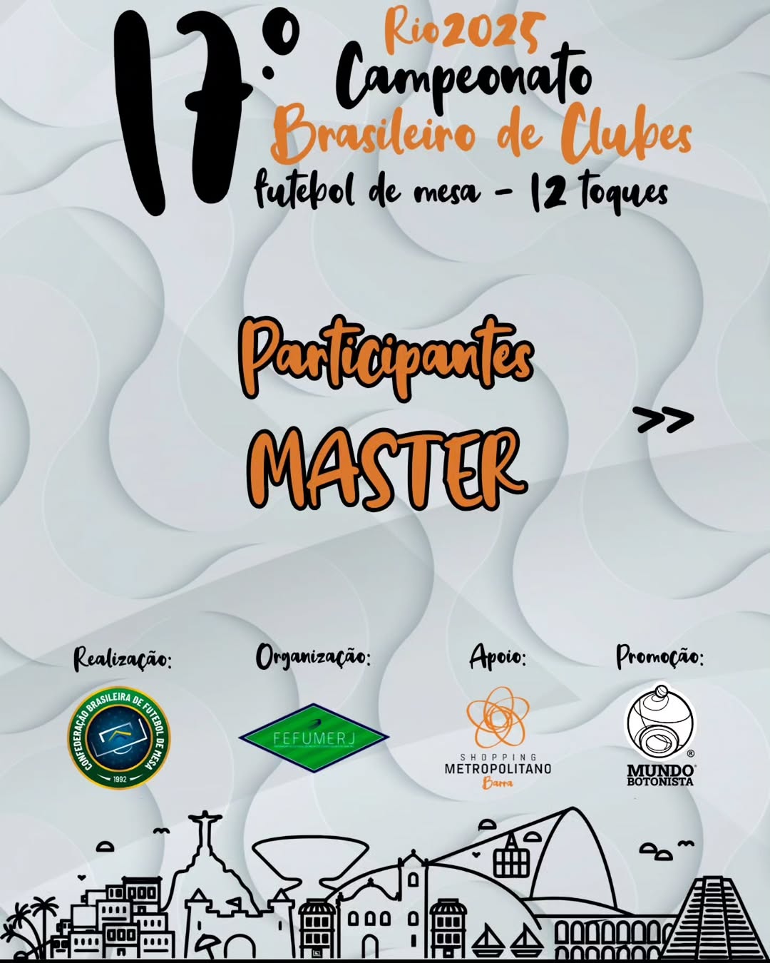 🏟 O Rio de Janeiro será a casa do 17º Campeonato Brasileiro de Clubes de Futebol de Mesa – Regra 12 Toques, entre os dias 20 e 23 de novembro de 2025, no Shopping Metropolitano Barra.