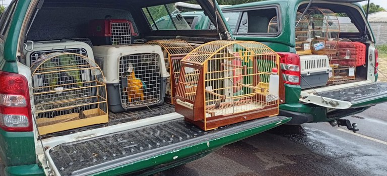 A ação resultou em duas apreensões. A primeira teve início após denúncia. Em uma fazenda da região, os agentes encontraram diversos psitacídeos mantidos ilegalmente, incluindo: arara-canindé; papagaio-verdadeiro; papagaio-do-mangue e maracanã-da-cara-amarela.